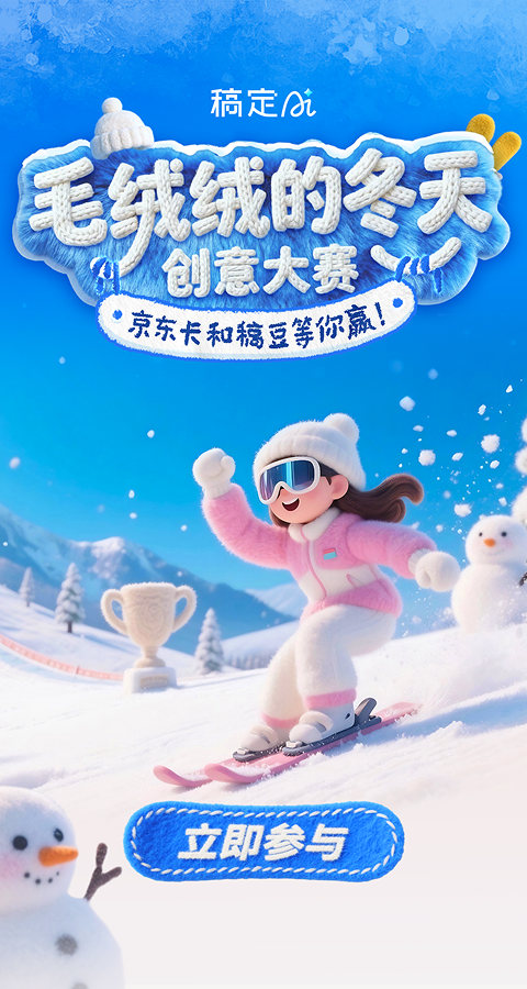 卡通感与软3D风融合,拟人化兔子在冬日小镇中欢快挥手,光影柔和,营造温馨梦幻的节日氛围。