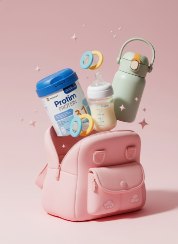 柔和粉调3D风,轻拟物设计融合塑料质感,萌趣云朵图案与漂浮奶瓶、奶嘴营造甜蜜可爱氛围,传递舒适温馨的育儿体验。