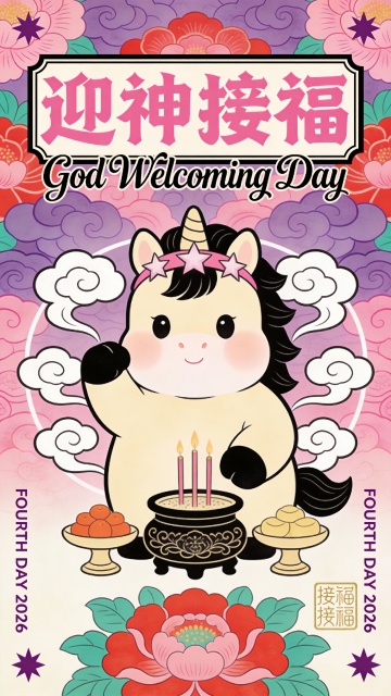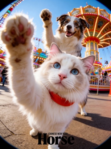 卡通马头与春节元素拼贴,插画风emoji点缀,营造可爱喜庆氛围,街头感与节日气息交融。