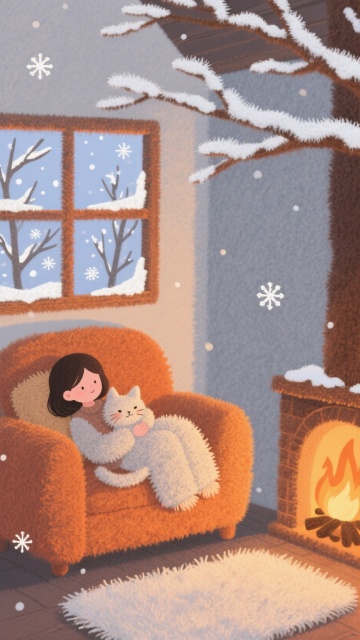 冬日窗边,少女凝望雪景,光影斑驳,胶片风与水彩质感交融,营造温馨梦幻的唯美氛围,轻拟物设计点缀雪花贴纸,尽显清新文艺气息。