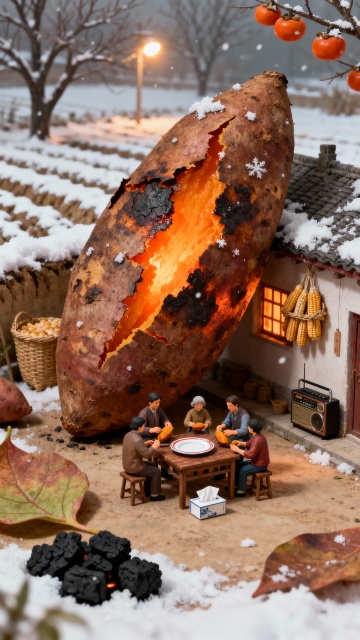 清透玻璃质感的“小雪”二字立于雪地,3D重拟物设计融合光影折射与雪花元素,虚实交织,梦幻唯美的冬日节气视觉。