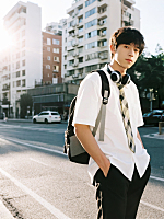 保留人物脸型、发型、年龄特征生成职场形象照,正脸照;人物居中,消除痘印,肤质优化处理提亮肤色,均匀肤色,干净的男士淡妆,气色自然,无明显浓妆痕迹;身穿浅灰色西装,白色T恤,下身浅灰色西裤,休闲双手插兜的姿态,肢体自然松弛,站立姿势,从容干练,臀部以上半身像,人物居中,表情动作自然,嘴角上扬,内敛,眼神坚定直视镜头,表情沉稳淡然;淡妆,柔和自然打光,画质清晰,头部完整,高清棚拍专业摄影人像写真,去除人物之外的所有元素,50MM标准焦段,F/4光圈(F/2.8-F/4区间),相机与人物距离3米,横向16:9比例(左右预留环境空间),人物占画面60%,入镜头部至膝盖上方5CM,平视视角,人物居中构图,头肩比例协调,结构准确;光比1:1.5,4800K中性光,修饰脸型,肤质哑光细腻,面部雾面柔光,轻透裸肌感,真实毛孔纹理,32K画质,去除人物之外的所有元素,零噪点降噪,极简中灰度纯色背景。