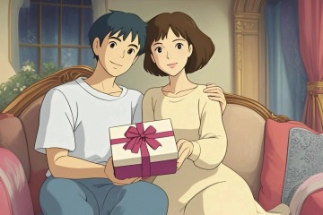 图片中的人物变成吉卜力动漫风格,完整人物,白色背景