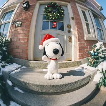 史努比戴着圣诞帽,鱼眼镜头玩偶