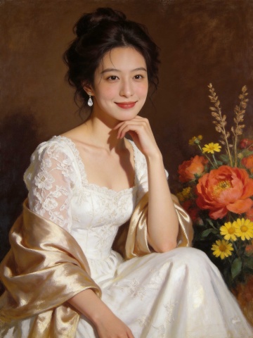 怀抱丰收的麦穗,在农田里,身后是拖拉机,写实主义油画风格,解放初期宣传画,抬头挺胸,改革开放时期,复古广告海报宣传画,时代印记