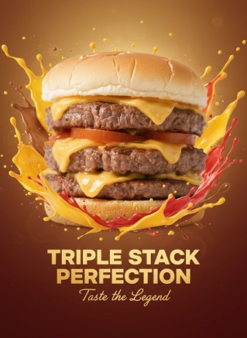 保持汉堡主体。生成1张商品营销海报,发挥你的创意
