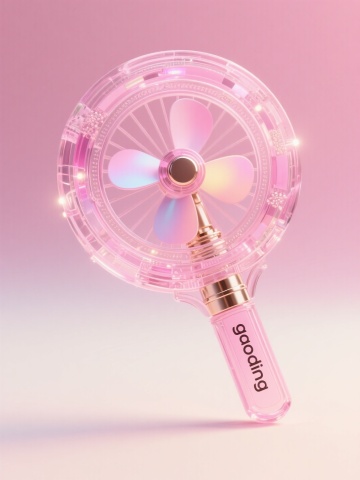 粉色搭配,甜美风格应援风扇,握柄上写着“gaoding”