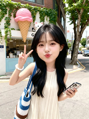 保留图片环境以及人物形象、面部特征。把人物的发型换成黑金画染。