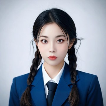 女生,白底证件照,蓝色西装,正面