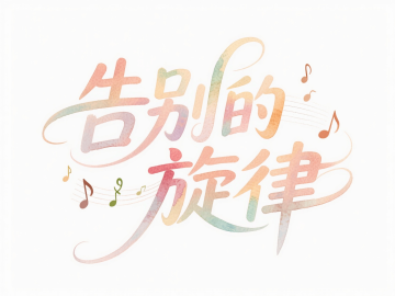 水彩字,渐变晕染,现代手写艺术字,文案“告别的旋律”,装饰图案音符,白底