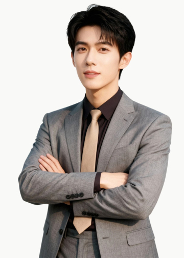 职业形象照,美颜磨皮,臀部以上的半身照,穿着灰色西装西裤,深色衬衣,浅咖色领带,发型整齐,双手抱胸,淡妆,站立,表情动作自然,纯色浅色背景,去除滤镜,专业摄影,柔和打光,画质清晰,浅景深,人物居中。手部结构完整,手腕关节准确,比例协调。去除人物之外的所有元素。