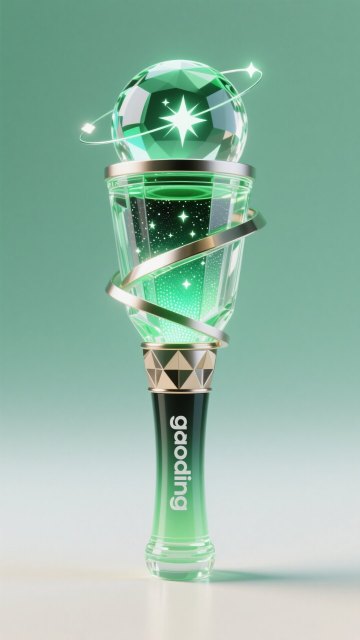 绿色搭配,高脚杯应援棒,握柄上写着“gaoding”