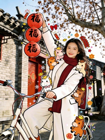 新春春节国潮喜庆手绘小马生活照