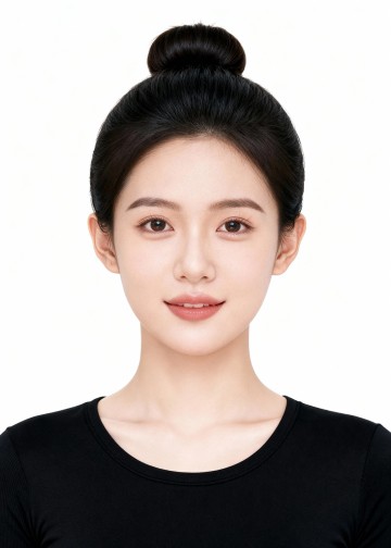 女生艺考丸子头黑T证件照