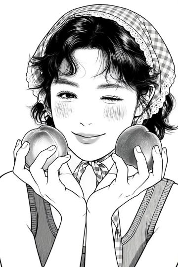 图片中的人物变成黑白日漫风格,背景白底,完整人物。