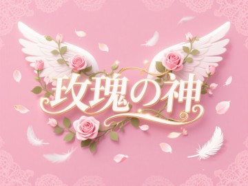 立体3D风格,鎏金包边的白色“玫瑰の神“,文字背后是一对巨大的天使翅膀,文字和翅膀被一个玫瑰藤曼包裹着。装饰:无数玫瑰花瓣和羽毛(飞舞在画面中,动感),(背景无缝图案:粉色蕾丝)。柔光加持,辉光加持