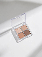 主体放置在中心,主题背后有四组粉状腮红垂直排列(浅粉到蜜桃粉渐变 ),每组倾斜,模拟手指涂抹腮红痕迹,纯净白色背景,均匀光影凸显粉体颗粒堆积、刷痕色彩过渡,借微距视角传递“粉质细腻、显色柔和”