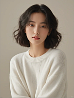 保留人物脸型、年龄特征生成标准职场形象照,50mm焦段,F/4光圈(F/2.8-F/4区间),相机与人物距离3米,横向16:9比例(左右预留环境空间),人物占画面60%,入镜头部至膝盖上方5cm,平视视角,人物居中构图,头肩比例协调,主体锐利,美颜磨皮韩式精致浓妆,均匀肤色提亮肤色,唇色自然微红,白色高级精纺面料西装,深空灰色衬衫,黑色阔腿裤,双手插兜的站立姿态,松弛不刻意,散发生活化的惬意感,中长发披肩,弧度自然,发型柔顺光泽,眼神直视镜头,目光温柔澄澈,表情自然,嘴角微微上扬,气质自信从容霸气干练;均匀肤色,专业人像摄影写真,头部完整,结构准确;光比1:1.5,4800K中性光,修饰脸型,肤质哑光细腻,轻透裸肌感,真实毛孔纹理,32K画质,去除人物之外的所有元素,零噪点降噪,简约中度灰纯色背景。