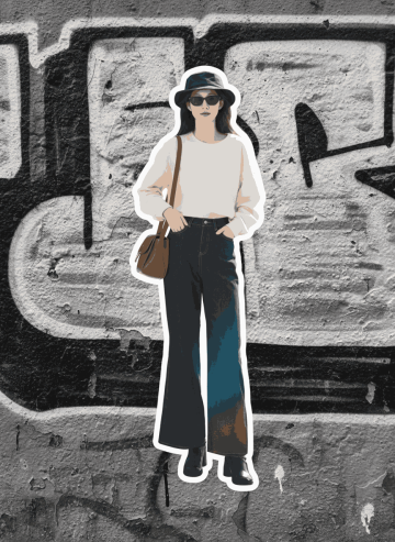 将人像处理成彩虹金属箔贴纸效果。抠出主体后,再将其贴在真实粗糙的城市肌理黑白简单涂鸦表面。贴纸上下有留白空间。