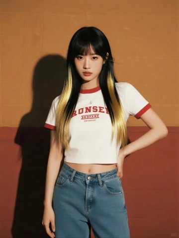 保留图片环境以及人物形象、面部特征。把人物的发型换成黑金画染。