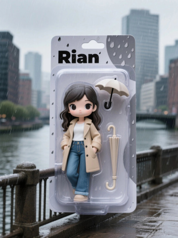盒上文字“Rian”,户外雨天场景,伞配件