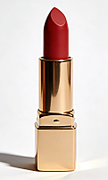 暗红色背景,产品后方搭配大面积口红涂抹痕迹,柔美的流体,侧上方硬光打亮,凸显金属高光、膏体色泽