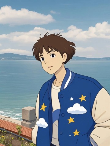 图片中的人物变成吉卜力动漫风格,完整人物,白色背景