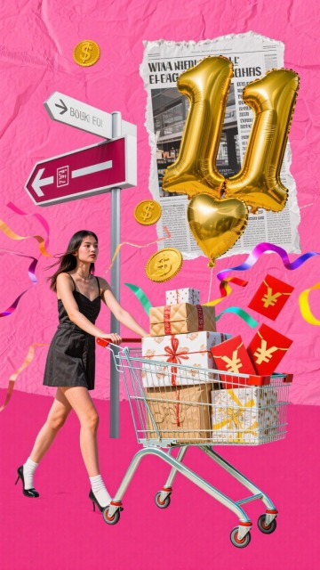 双11潮流拼贴丨女孩购物