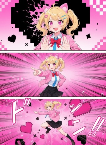 参考图片形象生成一组冲击力强的3格日漫分镜