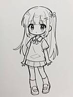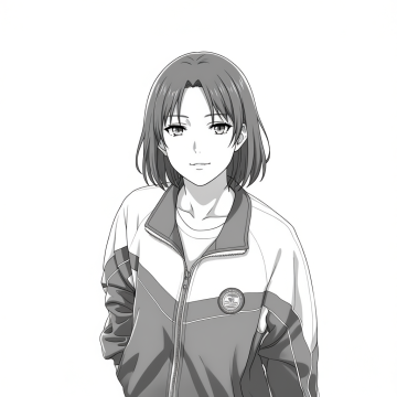 图片中的人物变成黑白日漫风格,背景白底,完整人物。