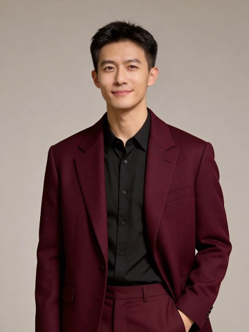 红色西装新年单手插兜男士形象照