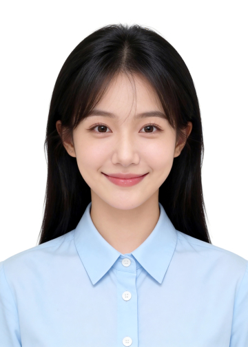 一个女生,工作形象照,蓝色背景,白色衬衫
