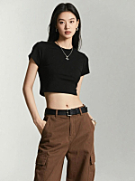 一个女生,背景暖白色,白色收腰西装,披发,耳环,一个手臂自然垂放,另外一只手放在腰上,暖光