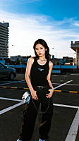 保留人物脸型、年龄特征生成标准职场形象照,50mm焦段,F/4光圈(F/2.8-F/4区间),相机与人物距离3米,横向16:9比例(左右预留环境空间),人物占画面60%,入镜头部至膝盖上方5cm,平视视角,人物居中构图,头肩比例协调,主体锐利,双侧打柔和光,美颜磨皮韩式精致浓妆,均匀肤色提亮肤色,身穿黑色亚面oversize精纺面料西装,黑色亚面精纺面料西裤;白色衬衫内搭,双臂自然抱胸,自信从容;站立姿势,温婉感,中长发披肩,弧度自然,发尾微卷内敛沉稳,眼神直视镜头,目光坚定且澄澈,表情自然.嘴角微微上扬,气质自信从容;均匀肤色,专业人像摄影写真,头部完整,结构准确;光比1:1.5,4800K暖调中性光,修饰脸型,肤质哑光细腻,轻透裸肌感,真实毛孔纹理,32K画质,去除人物之外的所有元素,零噪点降噪,简约冷调中深灰度纯色背景。