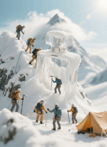 将图2商品放到图1中,商品被冰雪覆盖,小人攀爬商品,保证融图效果