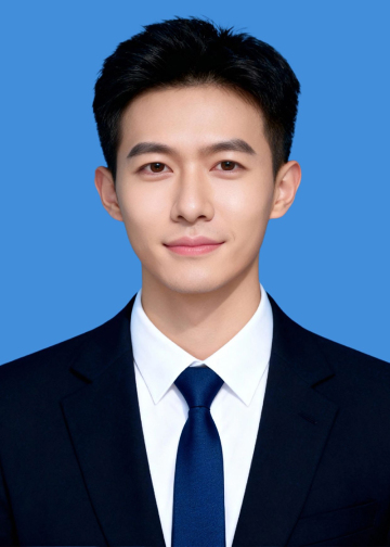 参考第一张图保留人物脸型、发型、年龄特征生成证件照标准样式,消除痘印,肤质优化处理提亮肤色,均匀肤色;外穿高级深色西装,内搭白色翻领长袖衬衫,搭配深蓝色领带;参考第二张图的人物占位和比例,居中平视正面视角,纯正面,胸部以上半身像;消除暗沉轻度磨皮,去除一切饰品;光线均匀柔和,画质清晰,表情自然,头部完整,去除人物之外的所有元素,简约蓝色背景;严格按照第一张图的内容生成。