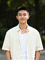 男生白色衬衫蓝底证件照