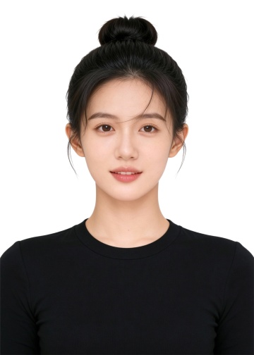 女生艺考丸子头黑T证件照