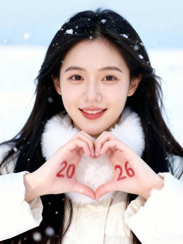 女生穿白色马海毛毛衣,粉色围巾绕颈,老式火车背景。上宫格:大特写镜头,女生脸部特写,车厢暖光从头顶灯处洒下,发丝发光,眼神带点旅途的憧憬,嘴唇微抿。下宫格:中景镜头,女生坐在老式火车窗边,手贴在车窗上看外面雪落,发丝被风(车窗缝)吹起。中间有大片雪花图标元素衔接。