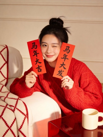 新春春节新春红色毛衣拜年照