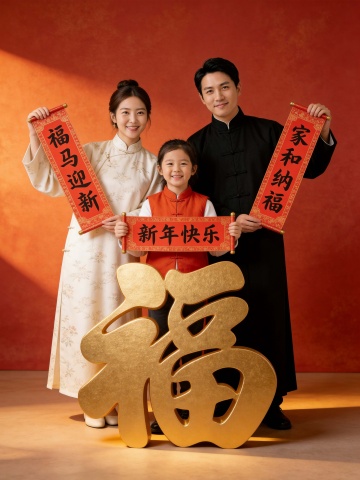 新春春节三口之家合影拜年照