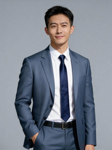 藏青色西装沉稳男性职业形象照