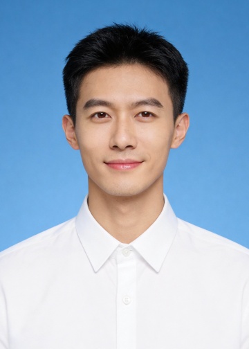 男生白色衬衫蓝底证件照