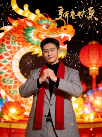 红色西装新年单手插兜男士形象照