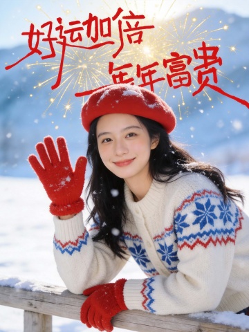 新春春节雪景互动生活照