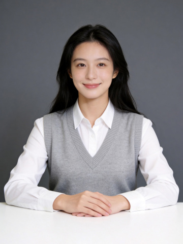 正式浅灰西装求职女生证件照