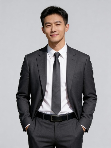 清爽灰色休闲西装男性双手插兜职业形象照