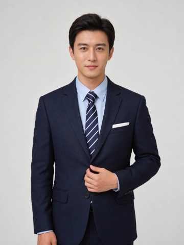 藏青色西装沉稳男性职业形象照