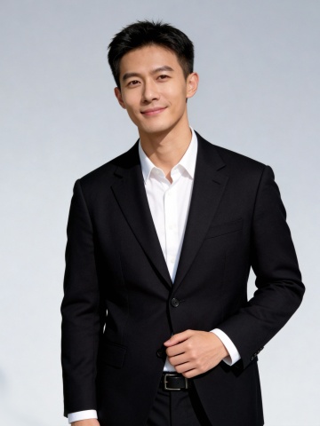 职场单手扶襟黑色西装男士形象照
