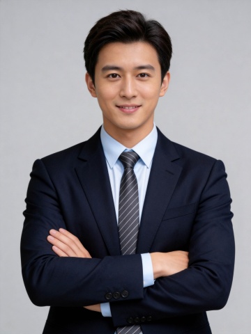 藏青色西装沉稳男性职业形象照